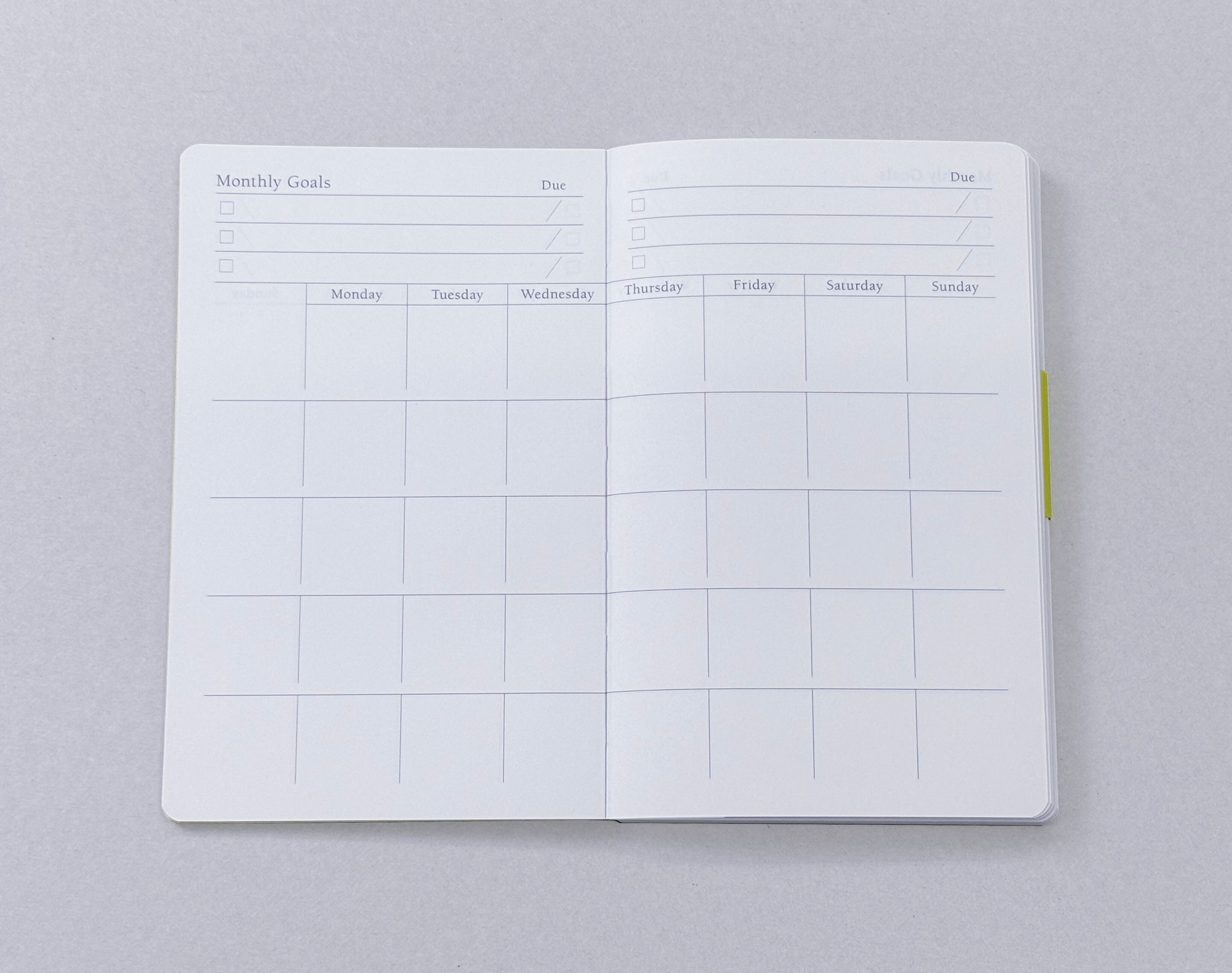 ●本文:上質55kg、158ページ(月間ダイアリー24P、ToDoページ134P)、糸かがり綴じ製本、しおり1枚付き(目標を早く達成した場合などに、貼って目標を変更できます)